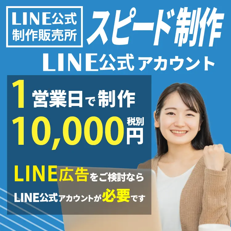 LINE 公式アカウント スピード制作 1営業日で制作。税別 10,000円